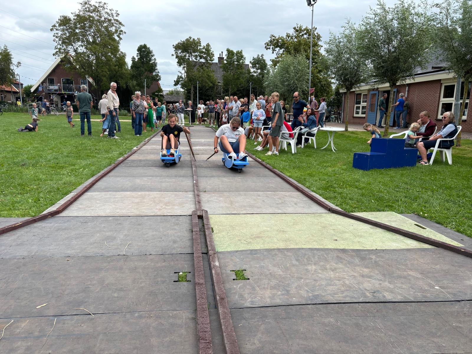 Op zondag 31 augustus trapten we ons jubileumjaar af met priksleewedstrijden voor de jeugd. In vier leeftijdscategorieën werd er vol vuur gestreden. Priksleeën gebeurt normaal gesproken op het ijs, op een slee met ijzers. Voor de gelegenheid hadden we deze keer sleetjes op wielen en een speciaal daarvoor aangelegde baan. Tientallen kinderen lieten zich van hun beste kant zien. Voor vrijwel alle deelnemers was het de eerste keer op een prikslee en duidelijk was te zien dat het soms even wennen was. Maar eenmaal op gang, liep het gesmeerd. Wat een enthousiasme! Na afloop werd er -op speciaal verzoek- spontaan voor de aanwezige volwassenen nog een kleine competitie gehouden. Een prachtig begin van ons 125e verenigingsjaar.