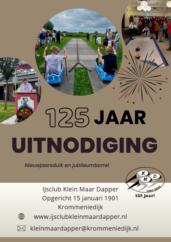 Op 15 januari 1901 is Klein Maar Dapper opgericht, dat betekent dat we vandaag echt 125 jaar bestaan! Dit vieren we zondag 18 januari met een borrel voor onze leden. Het Noord-Hollands Dagblad, de Krommenieër en de KNSB besteedden al aandacht aan ons jubileumjaar. Heel feestelijk allemaal. De borrel start zondag 18 januari om 16 uur in Dorpshuis De Horn, Krommeniedijk 131. Graag tot dan!